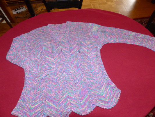 Schöne Farben, leicht grafisches Muster und die Ärmel+Bund+Ausschnitt haben 'Mäusezähnchen' - ein schöner und stabiler Abschluss.